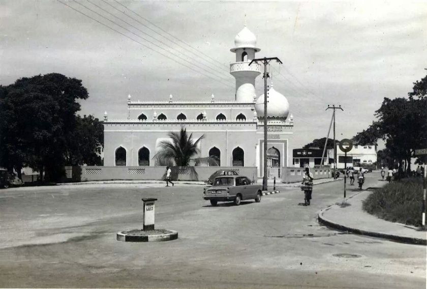 The Baluchi Mosque in Mombasa as it stands today after its second renovation in 2005. The road in the picture is Baluchi Street